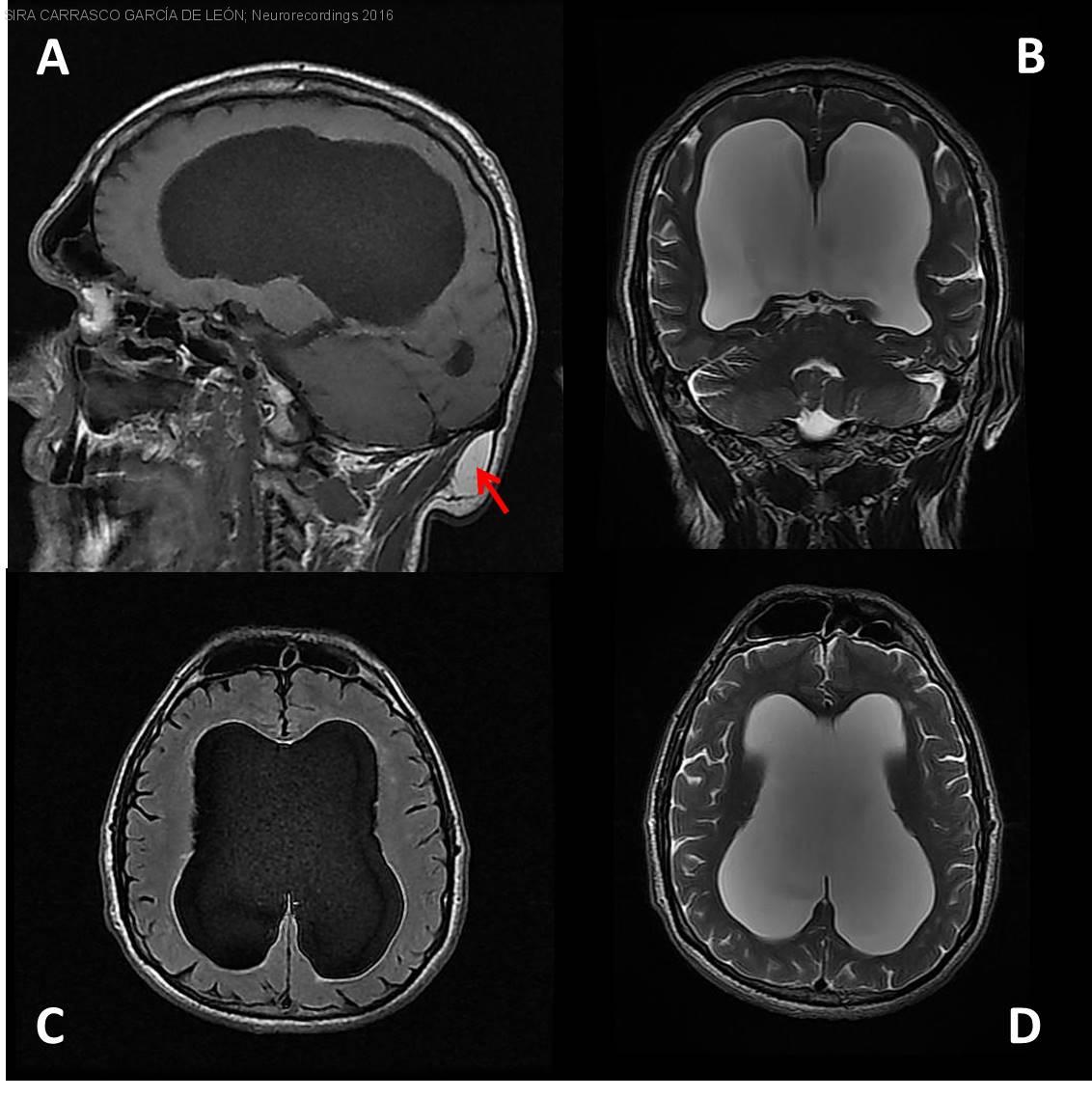 Diagnóstico final: Hidrocefalia triventricular crónica adquirida. Lipoma Subgaleal occipital