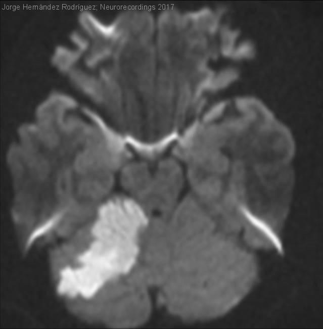 Varón de 28 años de edad, diestro, trasladado desde el Servicio de Neurocirugía con el diagnóstico de infarto cerebeloso derecho.