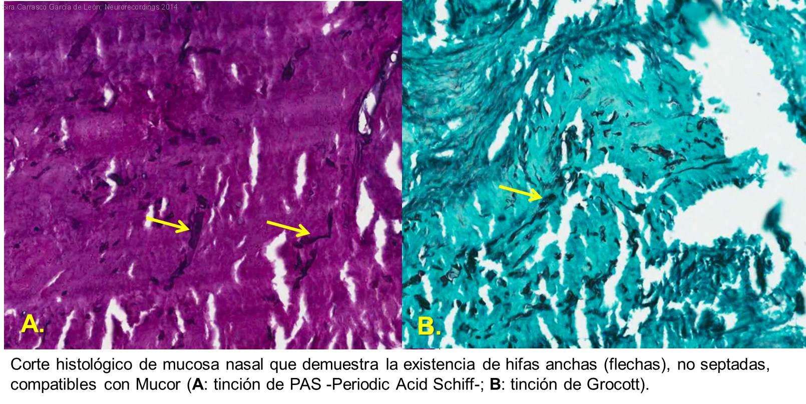 Diagnóstico final: Mucormicosis rinocerebral invasiva.