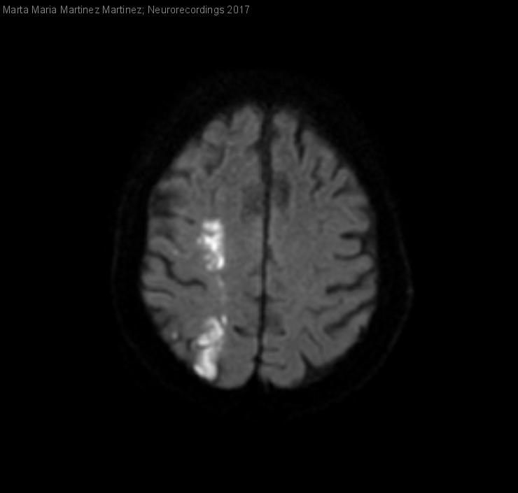 Diagnóstico final: Ictus isquémico en territorio frontera hemisférico derecho.